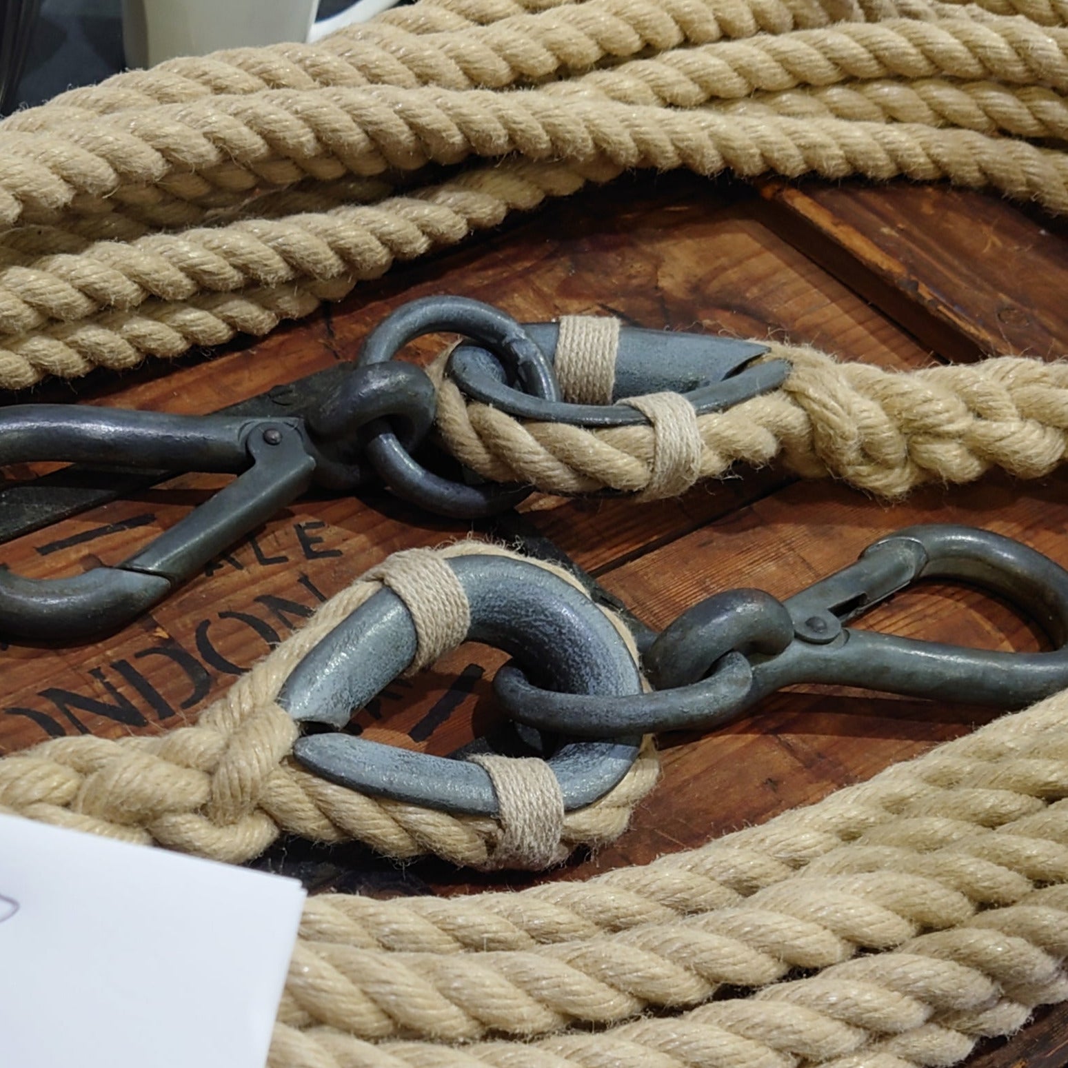 Through my work at Arthur Beale I've been privileged to do ropework for designer shops on Oxford Street and all around the world, public spaces like parks and the Tower of London, and of course, all sorts of boats, old and new. Some of the more unusual pieces I've made have included giant shoelaces, parts for clocks, and trapezes, and I'm always looking to try something new and challenge myself.